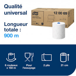 Rouleau Tork Advanced H1, d'une longueur de 150m, une largeur de 21cm en 2 épaisseurs.