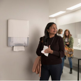 Tork PeakServe® : la dernière innovation conçue pour les sanitaires à forte circulation où le personnel doit optimiser le temps de nettoyage et maintenir un bon niveau de circulation des usagers.